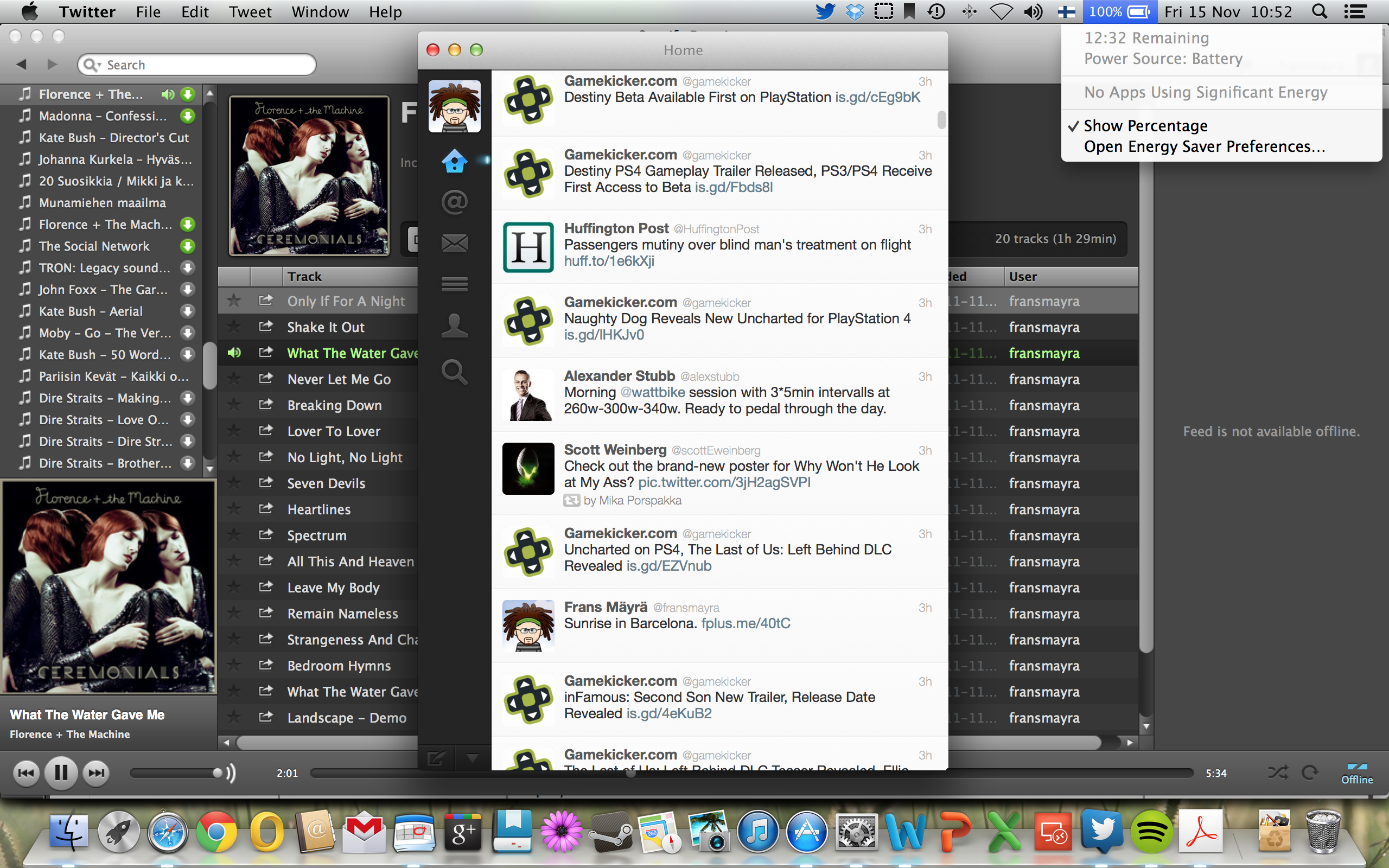 Mac is not a perfect thing, of course. I have got my share of kernel panic/crashed apps (Steam, for example), and the first thing when out of box, this thing had was to completely hang up the touchpad and keyboard (there was a fix by Apple for that particular bug). But there are clear benefits of manufacturing hardware in intimate connection with the software, like this battery example proves. In the Windows ecosystem it is difficult to achieve anything similar, since no one one party controls the hardware, applications and drivers that make all of them come together. There is much less choice, and OS X is very much a “walled garden”, but if you are willing to take the leap, there are clear benefits to reap. Now, if I only could re-educate the 20 years of muscle memory to reprogram new keyboard shortcuts to come automatically from my fingers…
