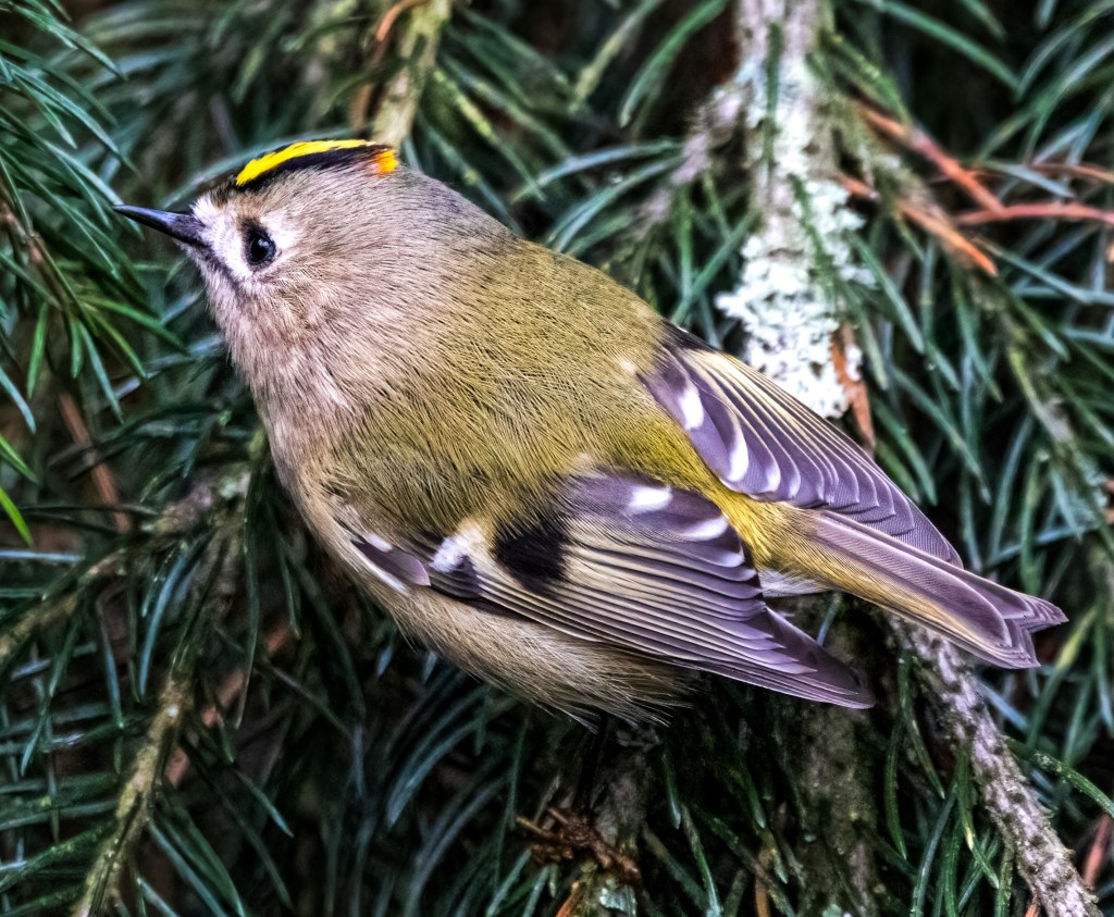 This Sunday was a day of achievement, when I got my first decent photos of goldcrest – the smallest bird in Europe! It is not that rare actually, but it is so shy and so skilled in hiding itself within foliage, that I was mainly able to locate it with the faint, high-pitched sounds it makes. And even while I knew the bird was there in the trees, front of me, it took a long time, c. 200 frames of missed photos and some quiet crawling from spot to spot to finally get an unobstructed view and a sharp photo of this tiny, elusive bird.