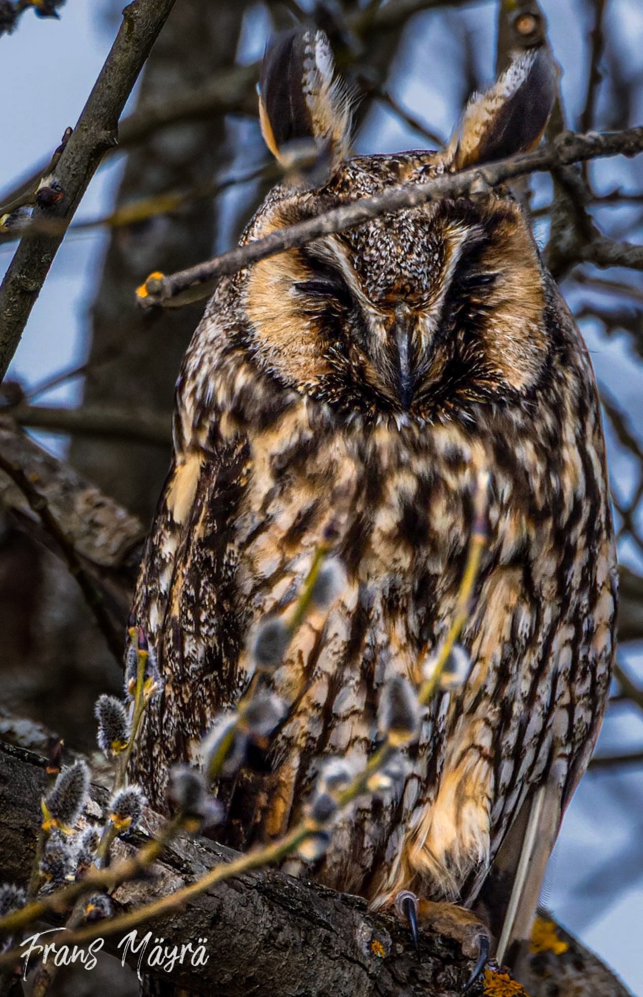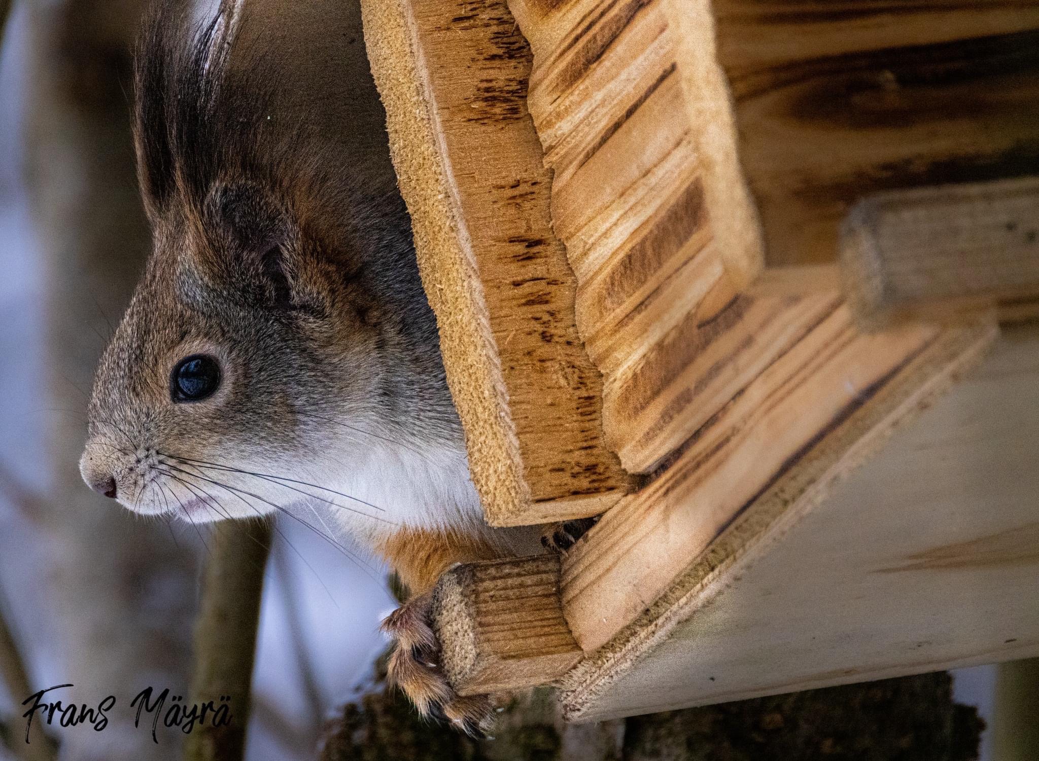 I have been experimenting with ”Taavi Tunturipöllö” (the Snowy Owl toy that Santa brought me) by using a low-powered flash to create more illumination into nature photos taken during the dark winter’s days.