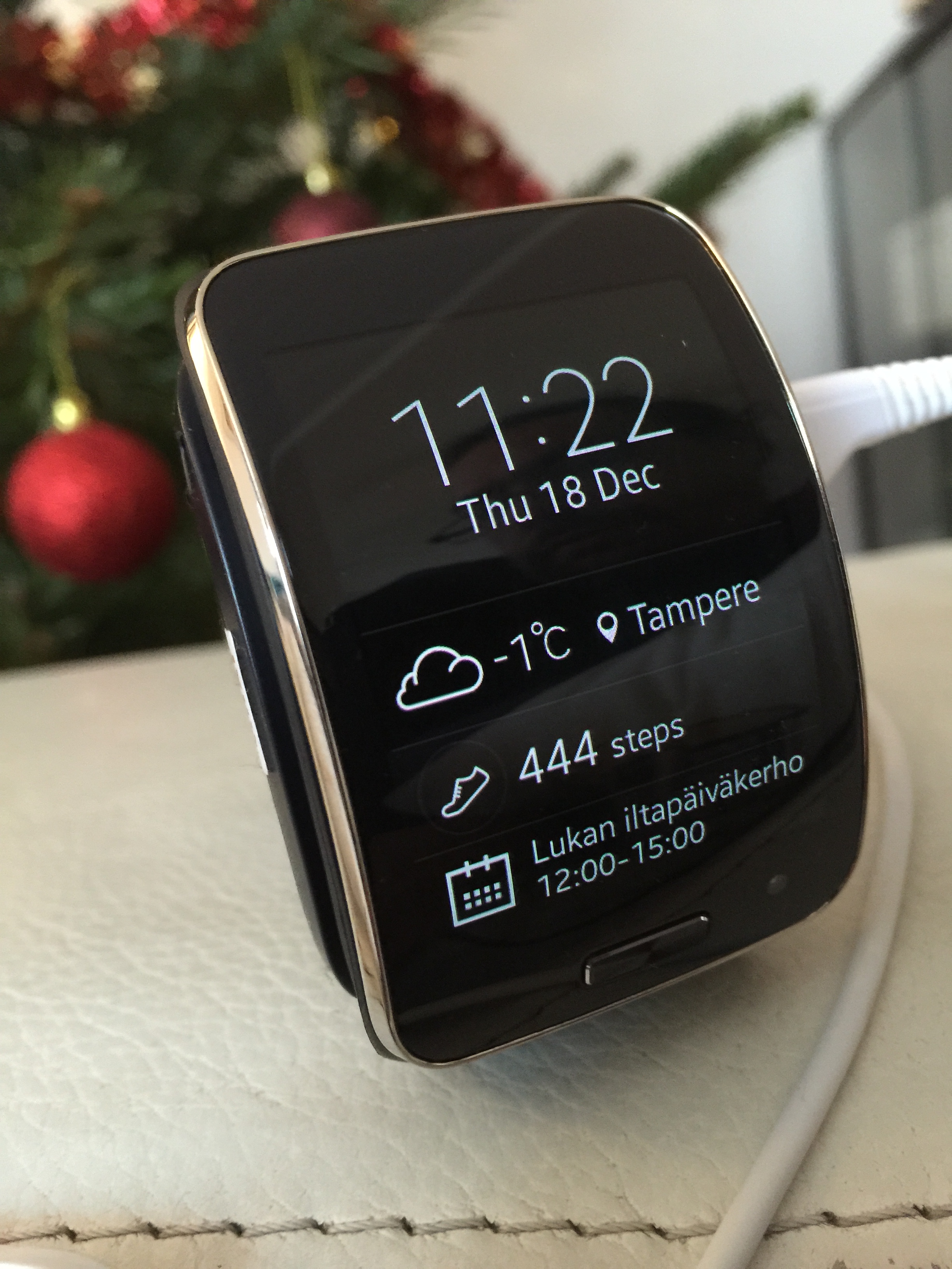 Our research group has been doing studies into the future user cultures of emerging game and media technologies for years, and the ethics and rationale of design is something that we try to pay special attention with. Wearable smart technology holds promise e.g. in health, social and gamification applications of various kinds, potentially communicating the social presence of our important people literally to “our skin” in real time. It can also be used to remind us to balance our lives better, or to help us achieve our important goals by supportive messages or incentives. Gear S did bring up the S Health Pedometer display every now and then while I was writing this thing, reminding me about my physical inactivity and encouraging me to get up and moving. In my case, that was not probably the most efficient rhetoric Samsung could have adopted, but maybe there will be also other, more playful and less efficiency-oriented apps available in the future. And if not in Galaxy Gear platform, then those interesting experiments will be arriving in some other. (There was one, exploration oriented “POI Nearby” style Gear app I could find, but I could not get it to understand Finnish language or place names, either.) In any case, the door for real-world pervasive computing and play applications is now starting to open.