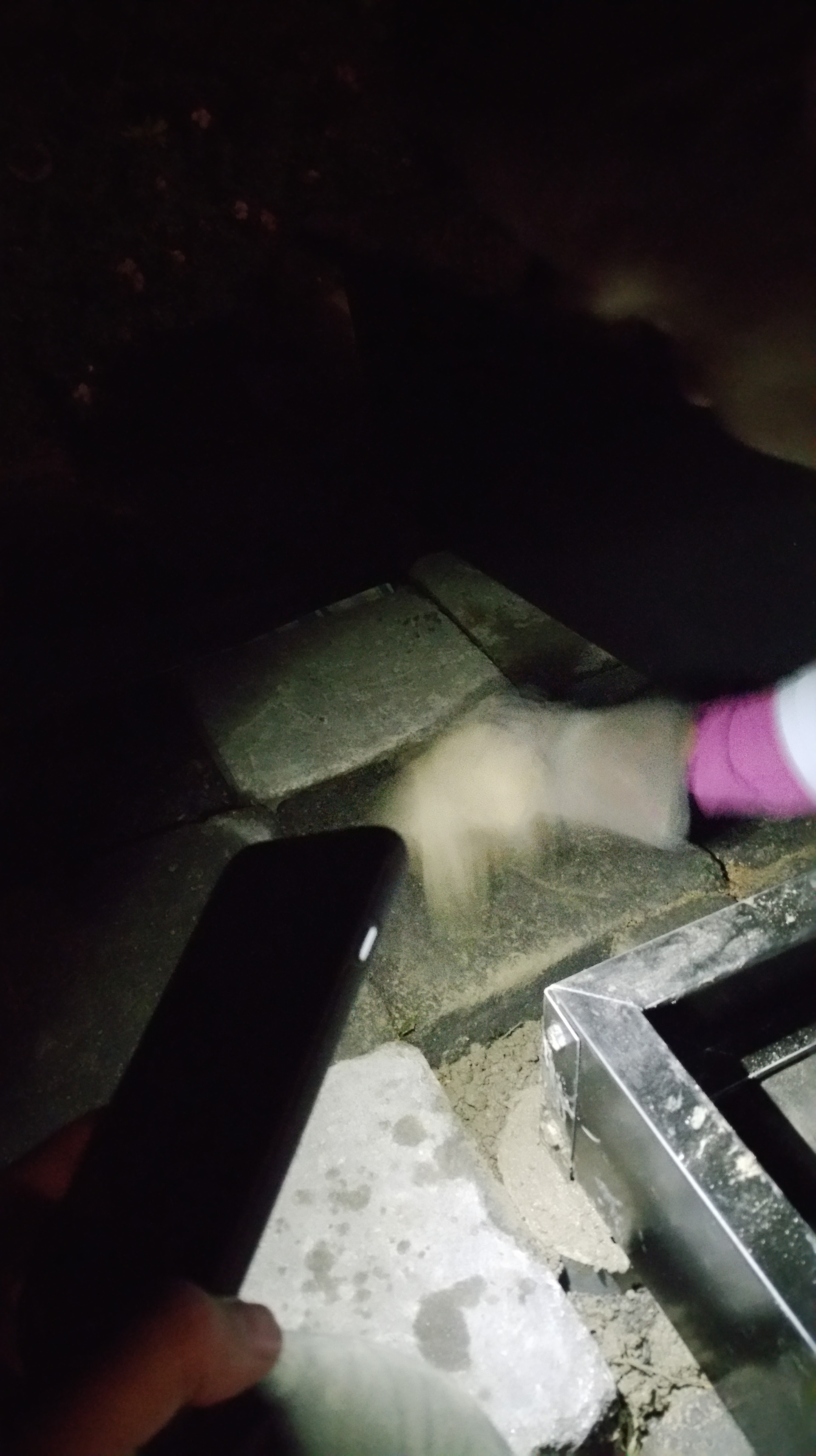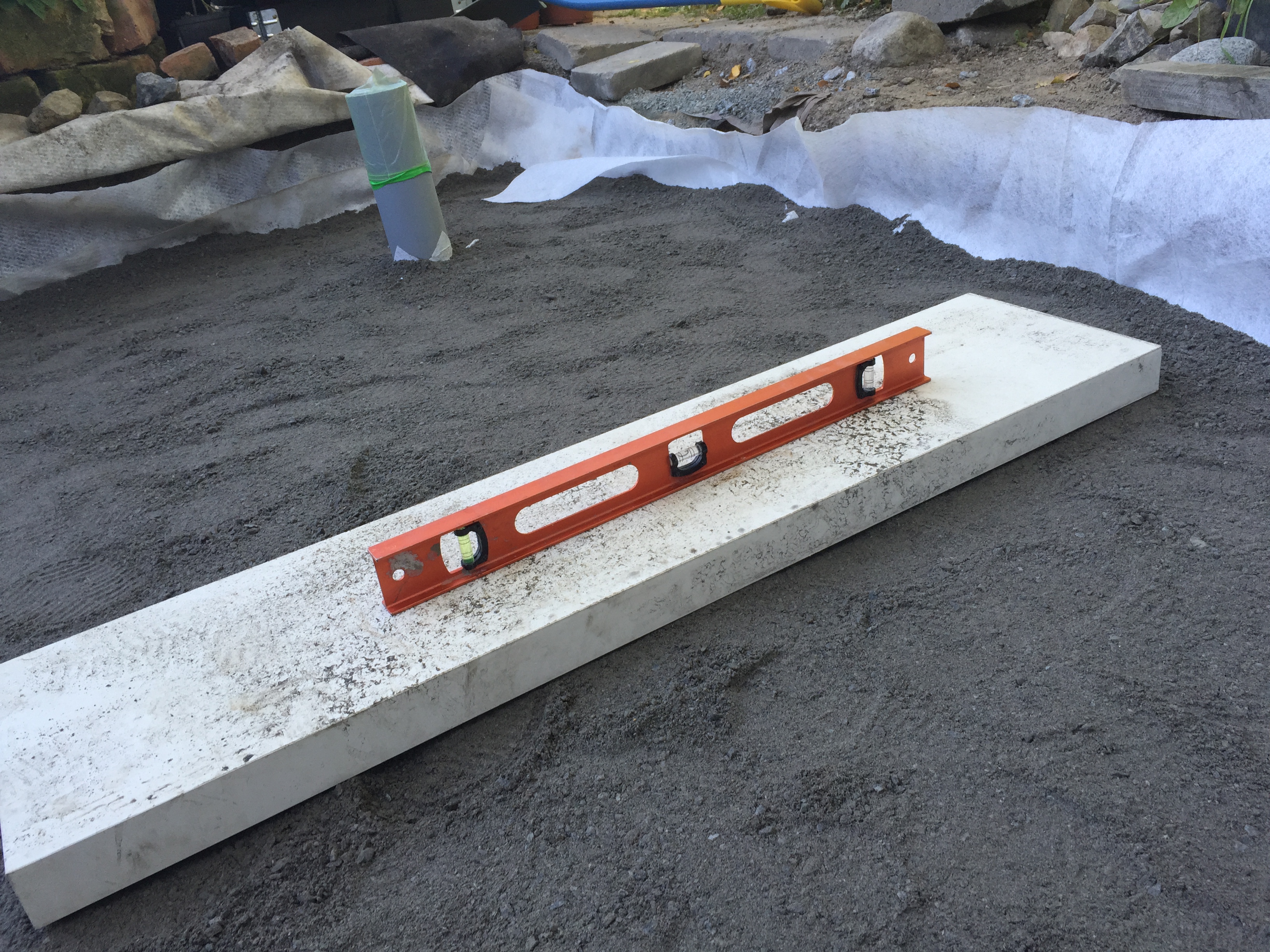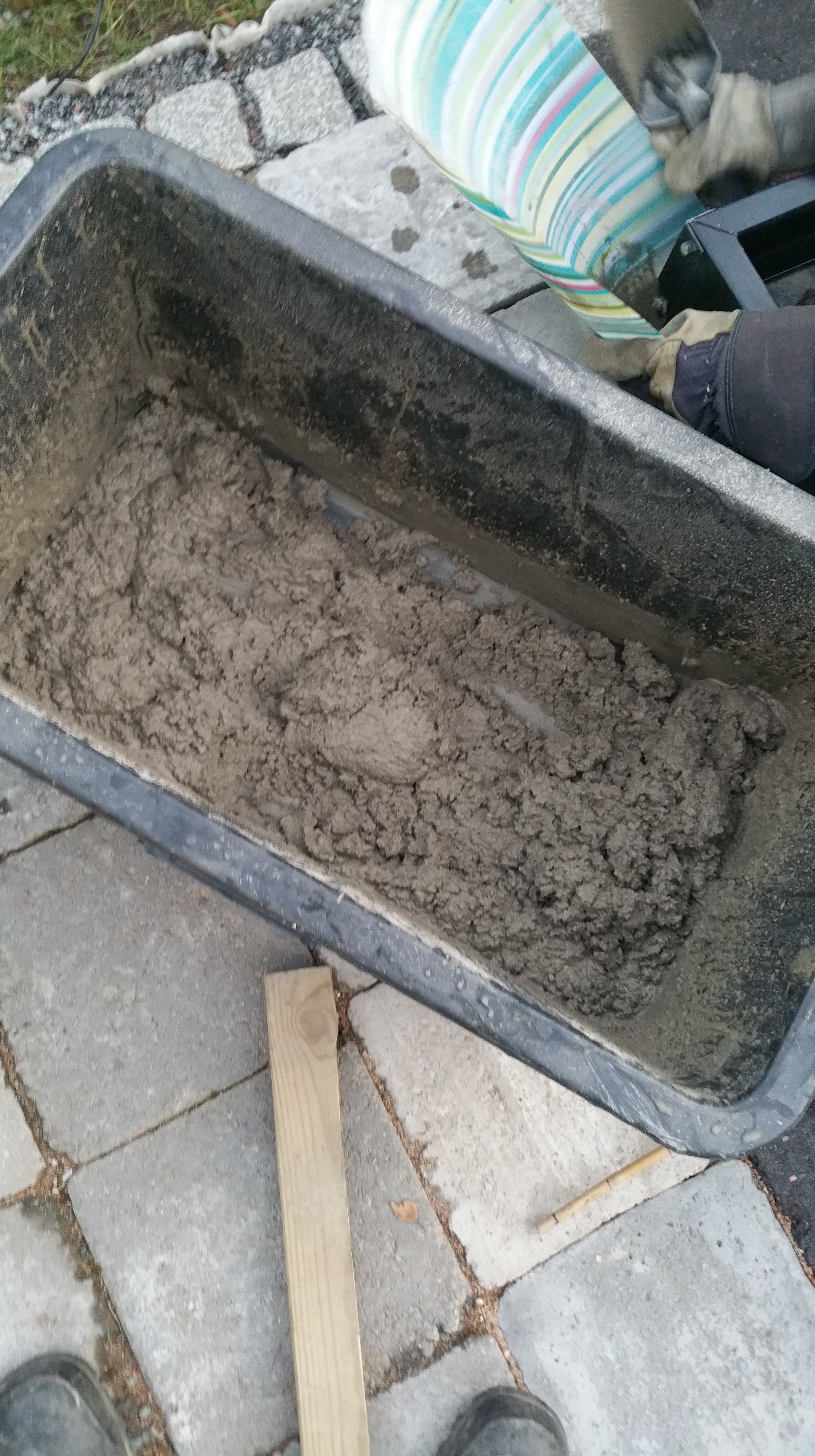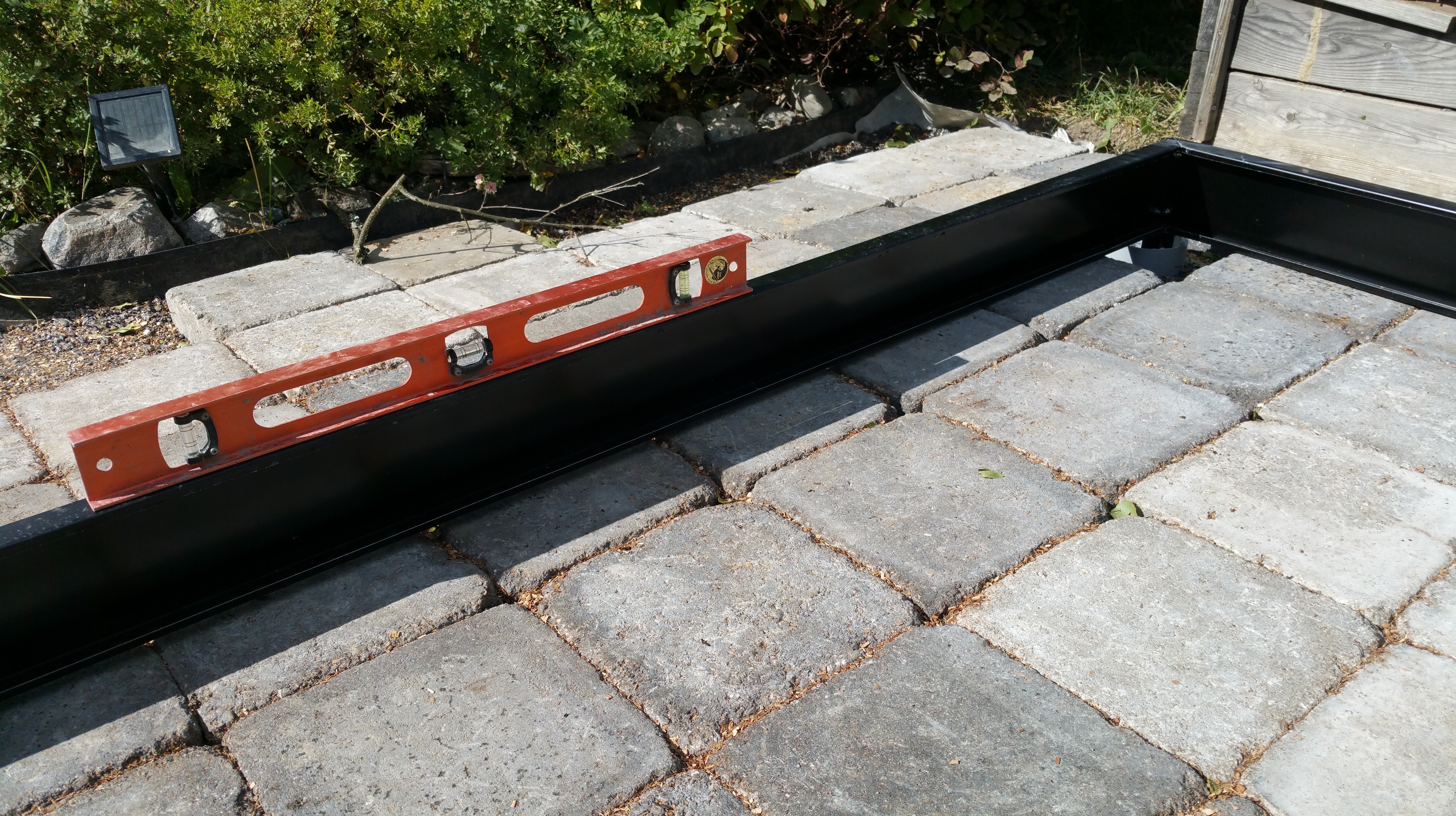 The foundations for the actual greenhouse are now ready, I think. The last steps in this phase included e.g.: using fine gravel and sand (“kivituhka”) to create a top layer that was at right angle and height to serve as the basis for concrete tiles that form the final top layer, supporting the steel plinth. My old heavy wooden ram (“juntta”) was again in use, manually banged down to compress the earth layers. (My academic hand muscles are not perhaps best suited for this kind of work, btw, I noticed the following day…) Before installation of the greenhouse plinth (the steel base), there was one important extra item to take care for, however. The greenhouse was being constructed near – almost underneath – a large old birch, which had already started to rot and drop branches. It was now the very last moment to say goodbye to her (cutting down a large tree later, with delicate glass house underneath, would had been much harder, or impossible). We hired a couple of professinal loggers come and cut the tree into pieces, and there was much work left also to us in sorting out branches (some the size and thickness of regular trees), twigs and leaves. After a full day of that lumberjack work, there was finally time to cast the concrete (oh yes, and a mixture of sand and mortar was brushed into gaps between tiles and dampened to fill them, as a final touch), but before that, the last round of measurements and fine-tuning was done to adjust and fix the steel plinth into the right positions. We had not managed to get all plastic pipes into same exact depth, and a Dremel tool was used to cut few millimeters away from the top of three of the protruding cast pipes. Bubble level was also much in use, and I also applied a couple of spanners to open all the corners of steel plinth, apply small wooden wedges underneath the plinth in a couple of places, and then fix them again, hopefully sealing everything into correct width and length measurements, while also keeping the entire construction at even level, using the bubble level tool. Then it was time to mix some concrete – a small power tool was used, but mostly manual blending (we did not have a proper concrete mixer). It was getting really dark at this point, but finally all the pipes were filled to the brim with concrete (there was beautiful full moon rising, I noticed, and the fireworks from Tampere Venetian Festivals were making popping noices somewhere far away). But: while the doing the control measurements we saw that while the X and Y directions were correct, the steel pinth was not direct – the thin steel bars were tilted (in Z, upwards direction)! It was pretty hard to solve the problem at this point, in dark and middle of the night. But the trick that did it was to loosen again all the nuts and bolts in the corners, move away the concrete tiles that we had used to support and fix the plinth into the right position, as some of them pressed the inner edges of the steel bars inwards so that all of them became tilted. Fixing all that required some fast action, as concrete was already slowly solidifying while all this was going on. While we managed to do all that, there was one measurement that I forgot to take. In the morning, I wanted to kick myself: the front part of Juliana’s steel plinth consists of three separate elements, and I had forgot to check that they were fixed so that the width of plinth in front was the same as the width of plinth at the back (there was room for adjusting the bolts in their elongated holes). We had carefully measured that the diagonals from corner to corner were identical, but forgot to measure that width of back and front were identical. And now all six steel pegs were fixed deep into concrete (with their tips bended, to prevent them from slipping ever out of concrete). Luckily, there was only c. 2 millimeter error between front and back, so the situation was finally not so bad. Hopefully the actual Juliana greenhouse construction has some adjustment room when the aluminium and glass parts will build and fixed on top of the steel plinth.